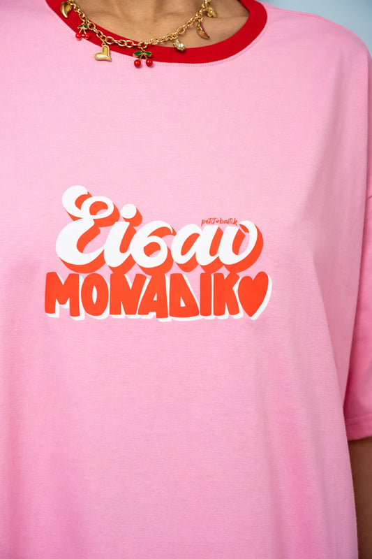 Reina T-shirt Dress “Είσαι Μοναδική” Ροζ Κοντομάνικο Φόρεμα με Τσέπες & Ζώνη Petit Boutik
