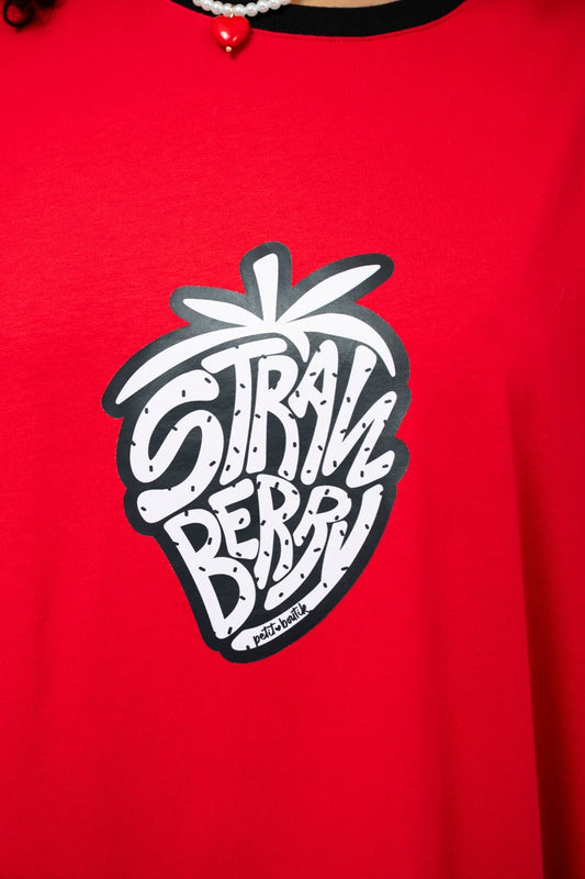 Reina T-shirt Dress “Strawberry” Κόκκινο Κοντομάνικο Φόρεμα με Τσέπες & Ζώνη Petit Boutik