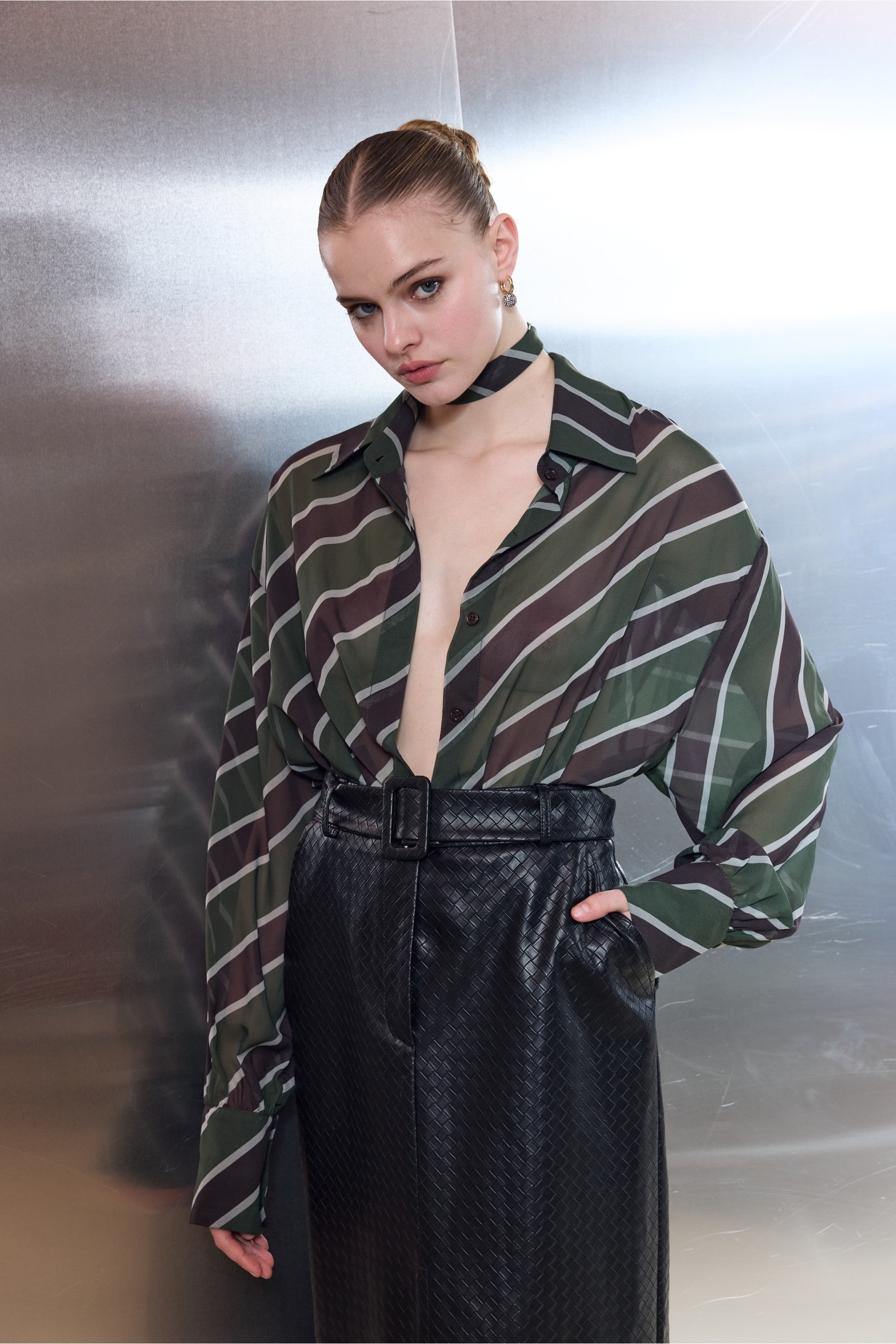This oversized shirt features a playful candy cane–inspired striped print, blending classic lines with a modern, relaxed silhouette. Designed for effortless styling, it offers a comfortable oversized fit that allows for versatile wear—buttoned up, layered, or worn open. Crafted from lightweight fabric, it delivers an easy yet polished look, perfect for both casual and elevated everyday outfits.
