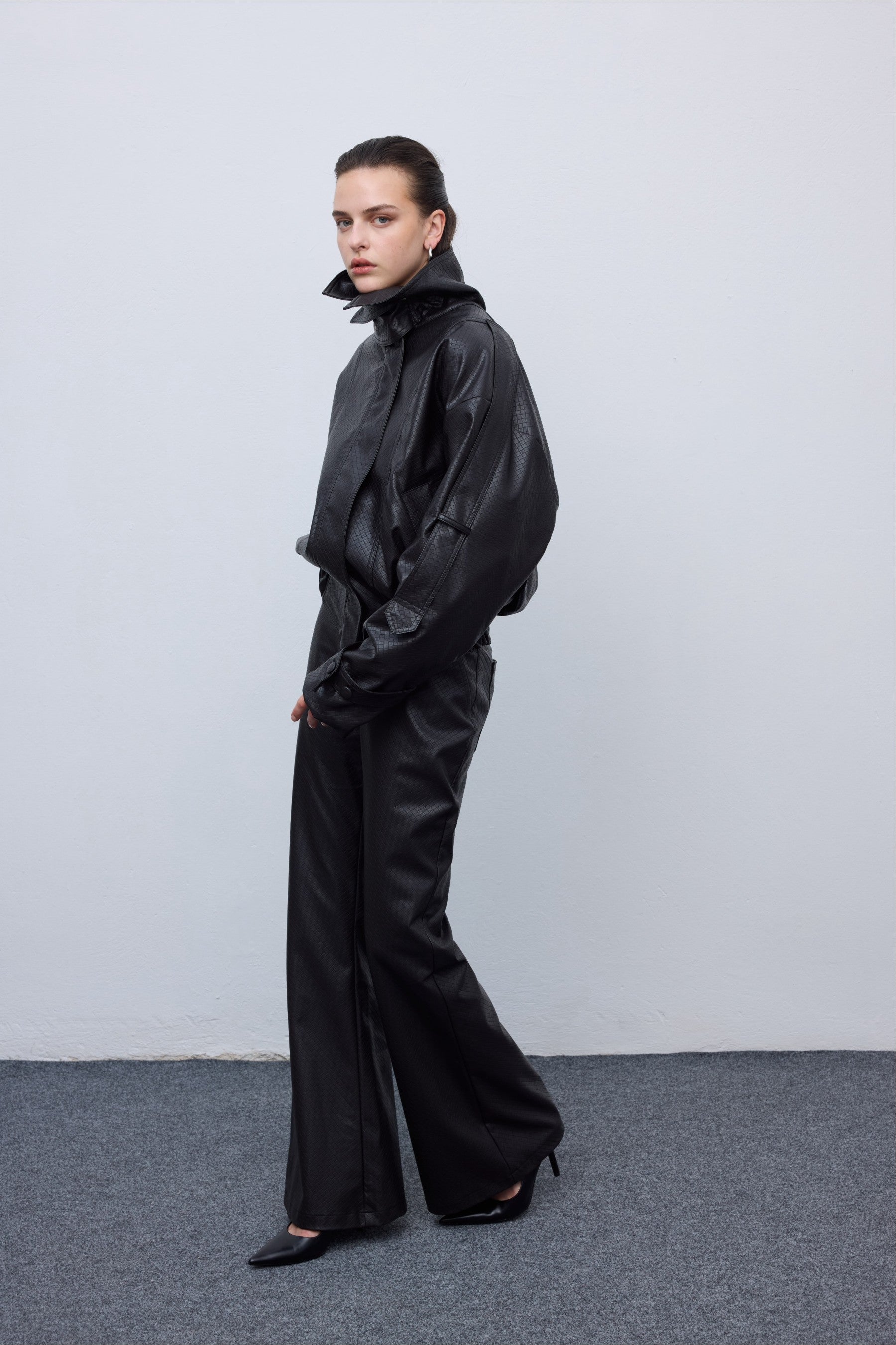 Elevate your outerwear game with the Leather Knots jacket — a bold, fashion-forward piece crafted in sleek faux leather. Designed in a relaxed, one-size silhouette, it features voluminous sleeves, a structured high neck, and a cinched hem for a modern twist on classic biker style. Perfect for layering, this statement jacket adds an edgy, elevated vibe to any outfit.