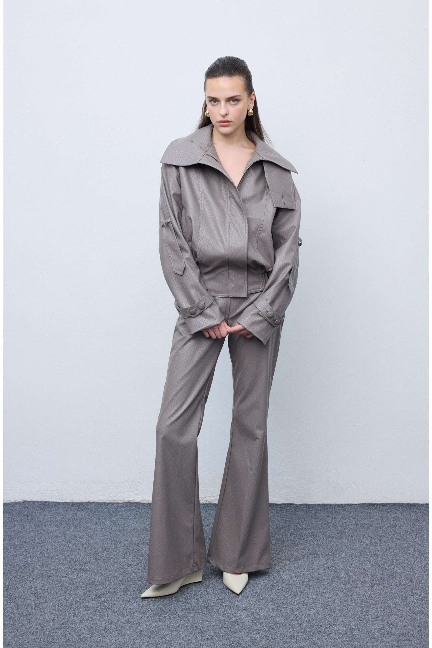 Elevate your outerwear game with the Leather Knots jacket — a bold, fashion-forward piece crafted in sleek faux leather. Designed in a relaxed, one-size silhouette, it features voluminous sleeves, a structured high neck, and a cinched hem for a modern twist on classic biker style. Perfect for layering, this statement jacket adds an edgy, elevated vibe to any outfit.