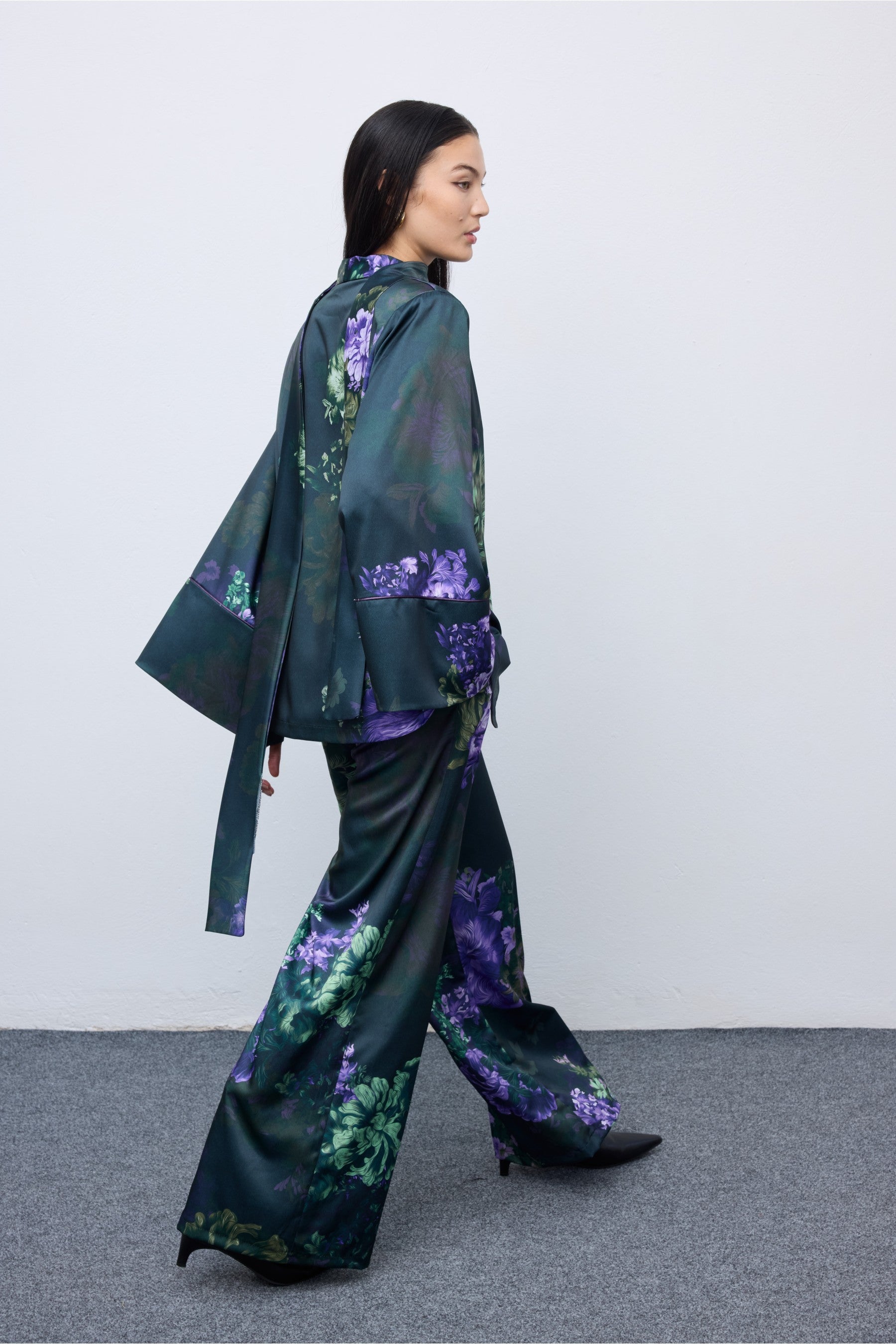 The Vittoria Pyjama Set blends fluid elegance with bold artistry - a true statement piece for every modern muse. Crafted from a soft, flowing fabric that moves beautifully with the body , this set features a relaxed silhouette, wide-leg trousers and a deep V-neckline for a touch of understated allure. Its floral print captures the spirit of freedom and modern femininity-perfect for both refined evenings in and elegant outings.