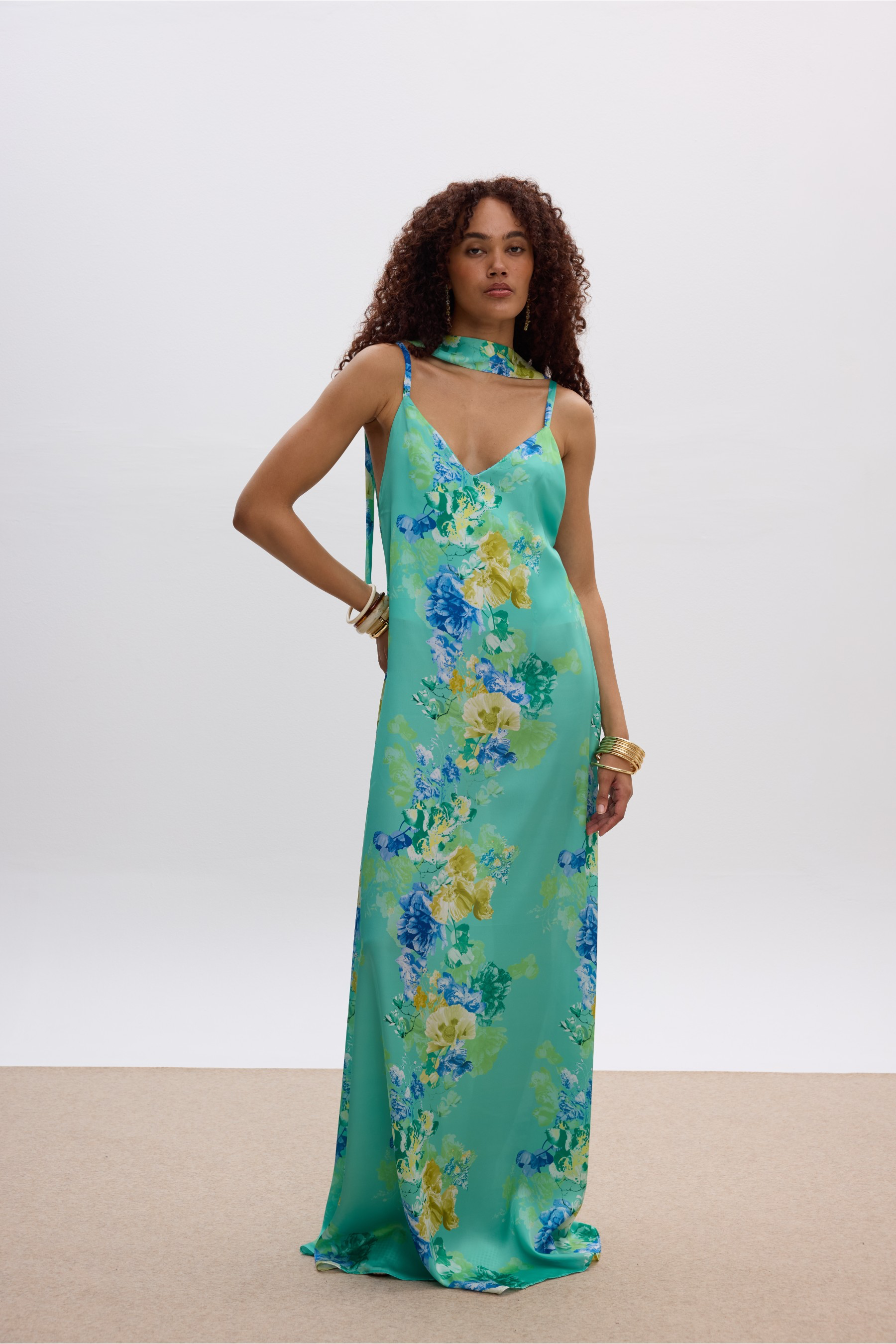Το Antiparos Maxi Dress σε αέρινη σατέν υφή και ένα ονειρικό floral print, αναδεικνύει με φυσικό τρόπο την κομψότητα. Η V λαιμόκοψη και οι λεπτές ρυθμιζόμενες τιράντες δημιουργούν ένα θηλυκό , ανάλαφρο look που αποπνέει καλοκαιρινή φρεσκάδα. Το απαλό πράσινο φόντο, συνδυάζεται με έντονα κίτρινα και μπλε λουλούδια , προσθέτοντας χρώμα και ρομαντική διάθεση σε κάθε εμφάνιση. Μπορεί να φορεθεί από το πρωί έως το βράδυ , ενώ είναι ιδανικό για καλοκαιρινά events, επίσημες εμφανίσεις και νησιώτικες εξόδους.