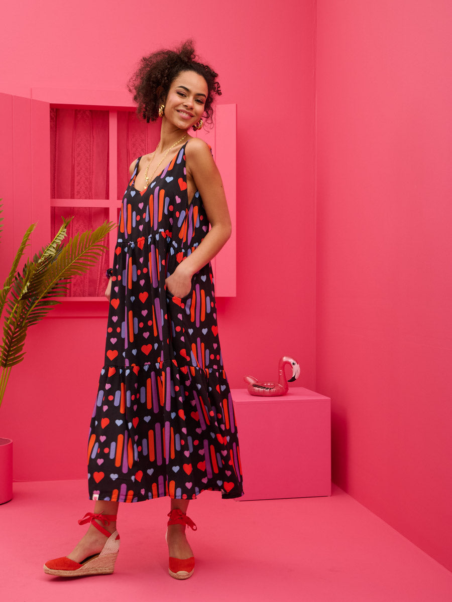 Athena Dress Vis Black Game Hearts Φόρεμα με Ζώνη & Τσέπες Petit Boutik