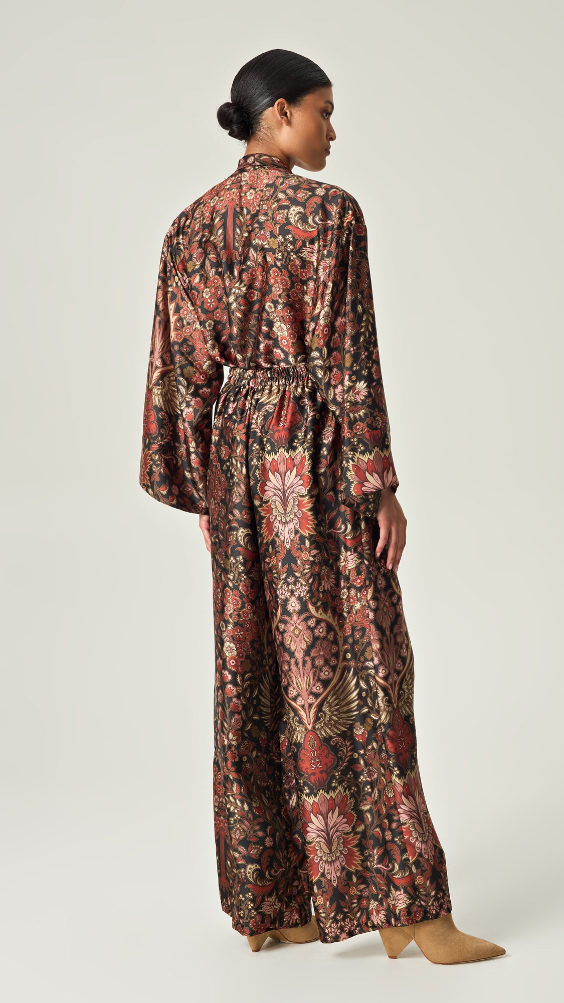 Το φαρδύ του κόψιμο και η ζώνη στη μέση προσδίδουν κολακευτική εφαρμογή και διακριτική θηλυκότητα, ενώ μπορείτε να το συνδυάσετε είτε με το αντίστοιχο Autumn Tapestry High Waisted Satin Pants για ένα ολοκληρωμένο σύνολο, είτε με τζιν για ένα πιο χαλαρό, αλλά πάντα στυλάτο look.