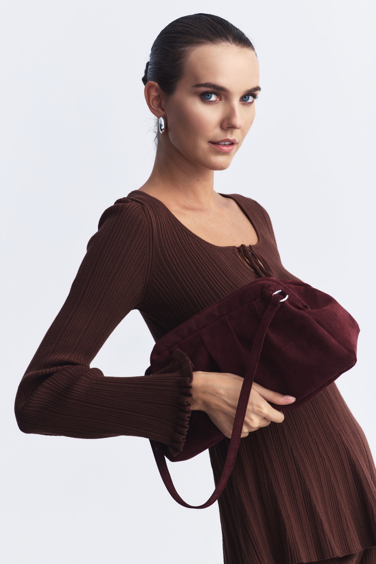 DIMI CLUTCH SUEDE ΤΣΑΝΤΑ ΜΠΟΡΝTΟ
