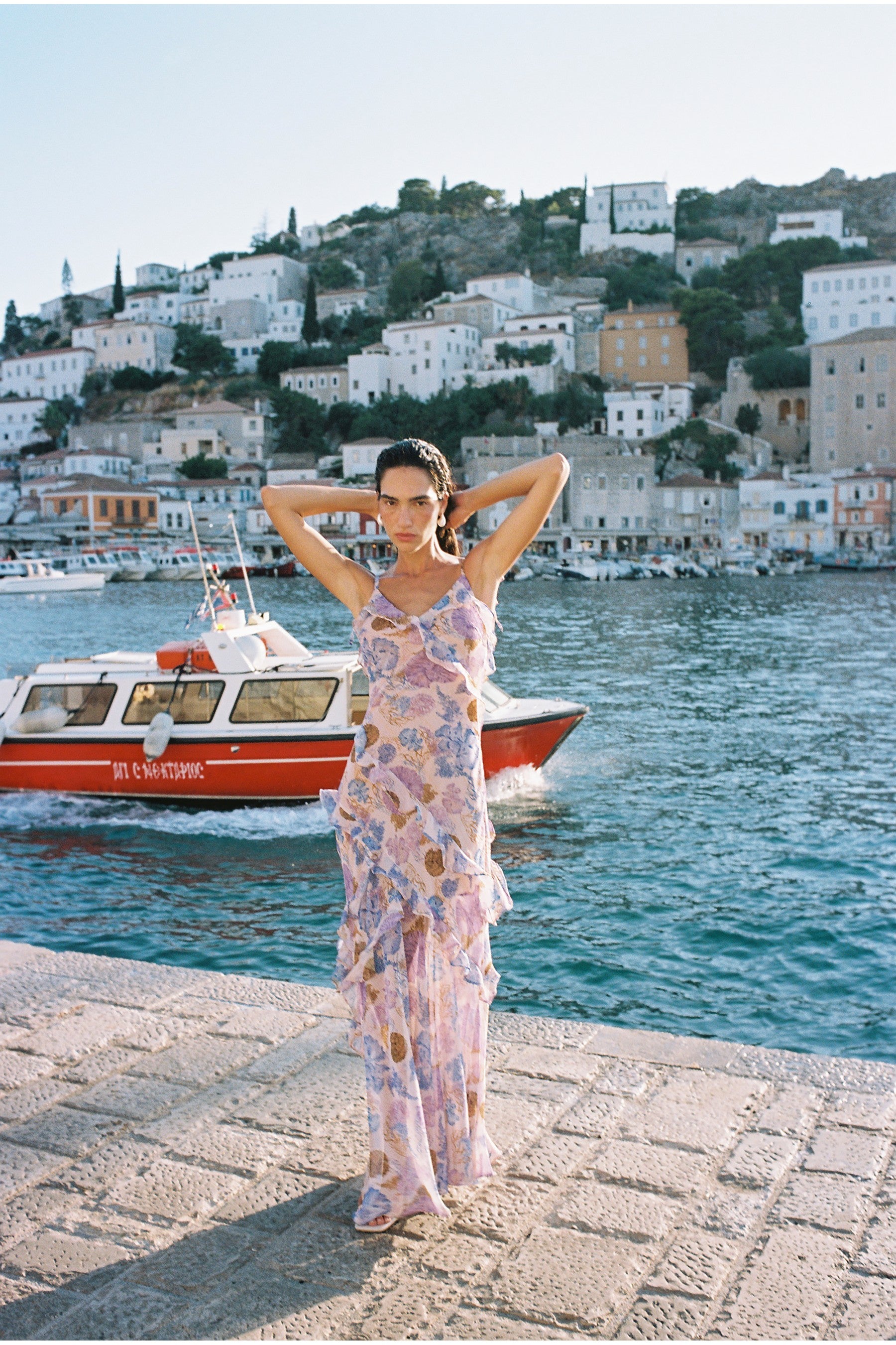 Tο Hydra Ruffle Dress, είναι το τέλειο φόρεμα για μία σικάτη, elegant εμφάνιση. Ένα υπέροχο item που συνδυάζει χρώματα σε αποχρώσεις του μωβ και μπλε σε ένα υπέροχο ανάλαφρο ύφασμα με χρυσοκλωστή. Ξεχωρίζει η άψογη εφαρμογή που προσφέρει σε διαφορετικά σωματότυπα. Φοδραρισμένο με υψηλής ποιότητας φόδρα.
