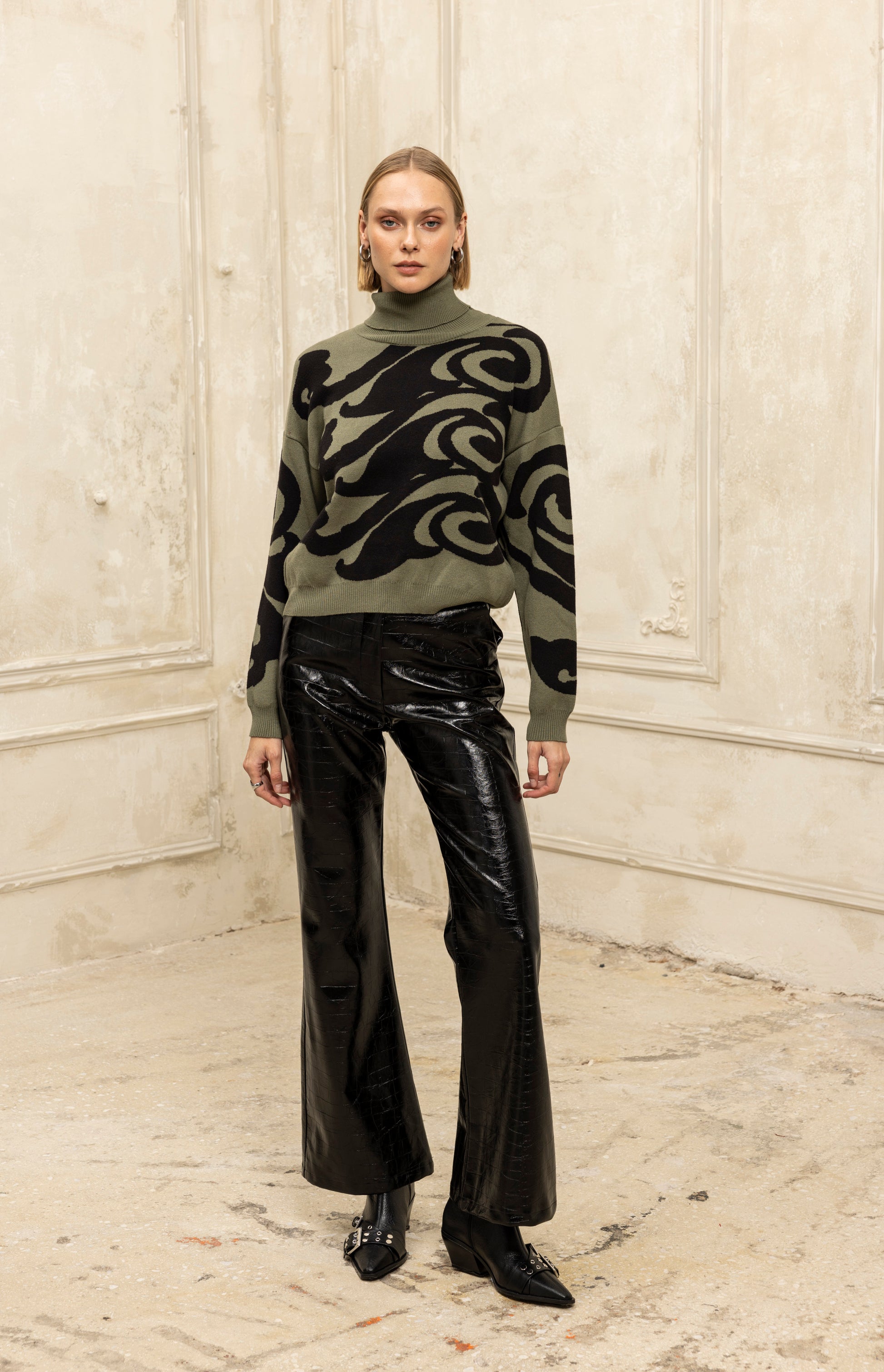 Το Kendal pant, το δερμάτινο παντελόνι με croco effect της συλλογής μας ,είναι μια τάση που αγαπάμε πολύ την φετινή σεζόν. Τα δερμάτινα παντελόνια δεν περιορίζονται πλέον μόνο στο μαύρο χρώμα, αλλά εμφανίζονται σε ζωντανές αποχρώσεις όπως το μπορντό, το λαδί, ακόμη και τα μεταλλικά, προσφέροντας ατελείωτες δυνατότητες styling. Συνδυάζεται απόλυτα με τα αντίστοιχα jackets και corsets , ενώ μπορεί εύκολα να φορεθεί με πουλόβερ και πουκάμισα.
