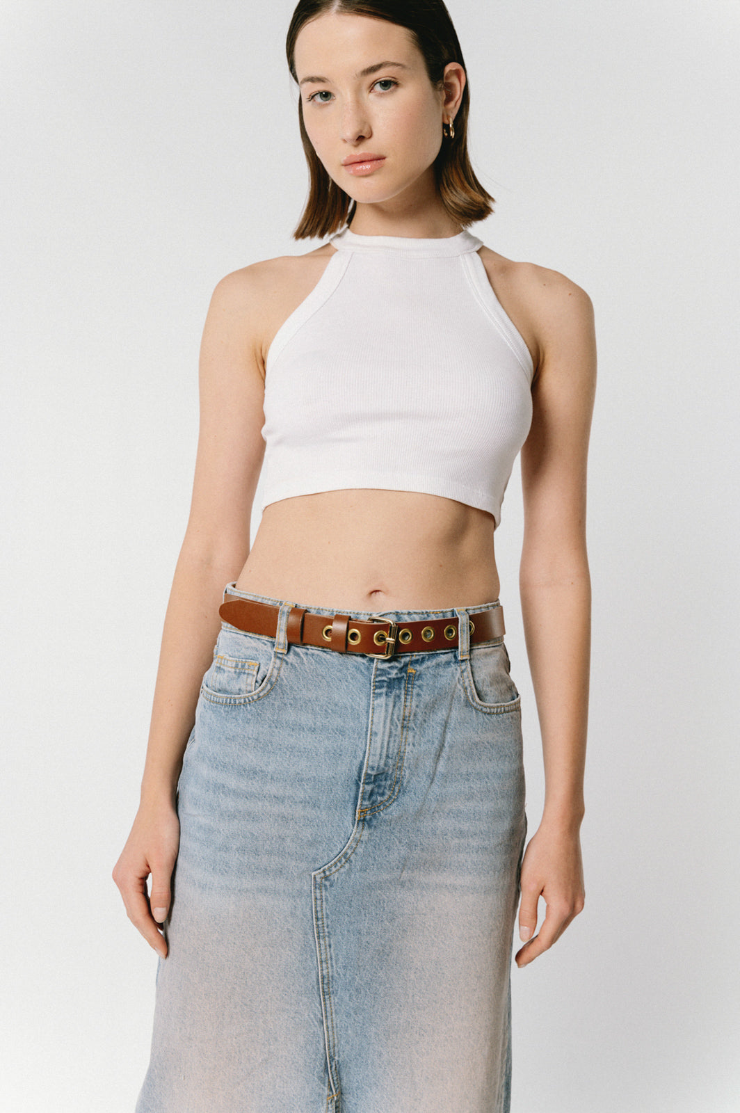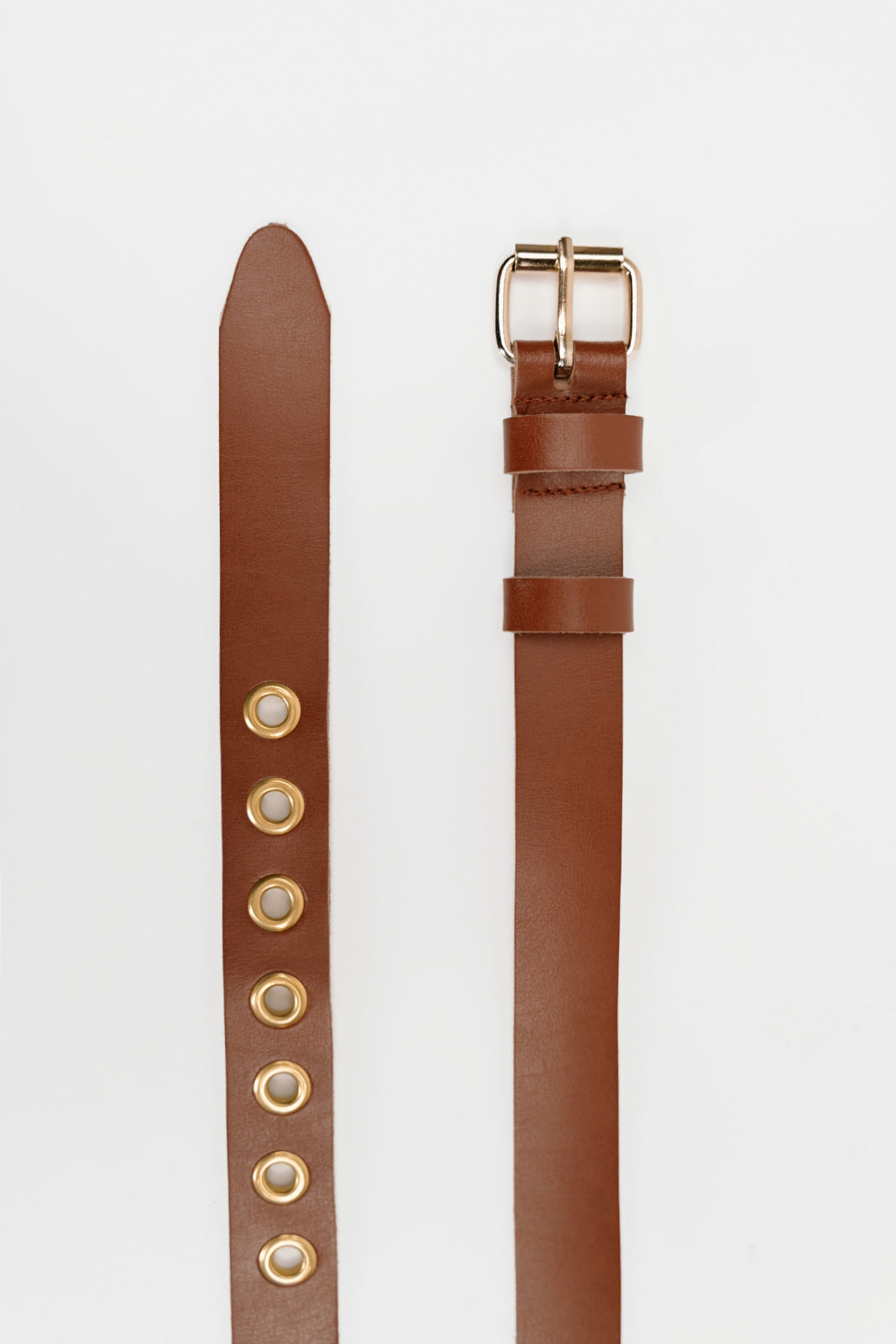 LIA ΤΑΜΠΑ δερμάτινη λεπτή γυναικεία ζώνη με χρυσή αγκράφα και διακοσμητικά διάτρητα τρουκ στο μπροστινό μέρος της. Το φάρδος της είναι 3 cm.Είναι μια λεπτή ζώνη δερμάτινη υψηλής αισθητικής που ταιριάζει στα θηλύκια όλων σχεδόν των παντελονιών. Είναι κατασκευασμένη από δέρμα Ιταλίας που έχει υποστεί την κατάλληλη επεξεργασία και έχει εξαιρετική αντοχή και μοναδική αίσθηση. Είναι εξαιρετικά ανθεκτική σε όλες τις συνθήκες.