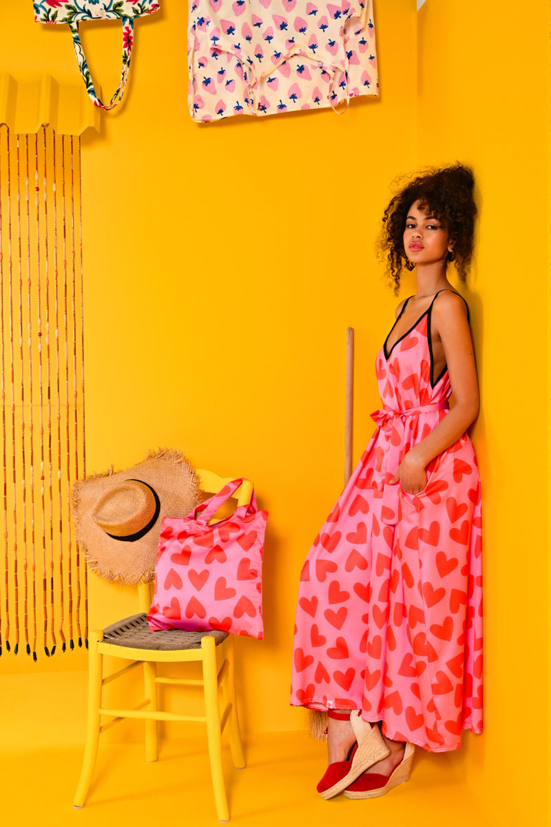 Matina Dress Pink Red Hearts Φόρεμα με Ζώνη & Τσέπες