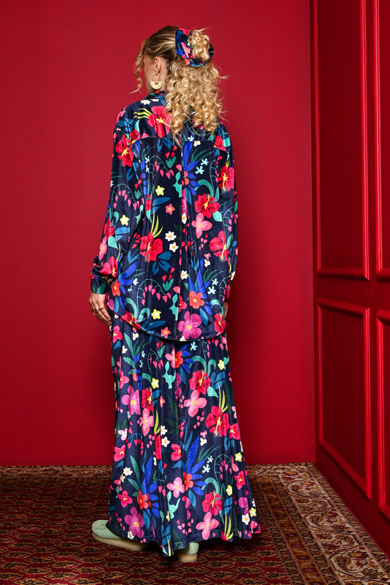 Maya Shirt Blue Floral Velvet Πουκάμισο Petit Boutik