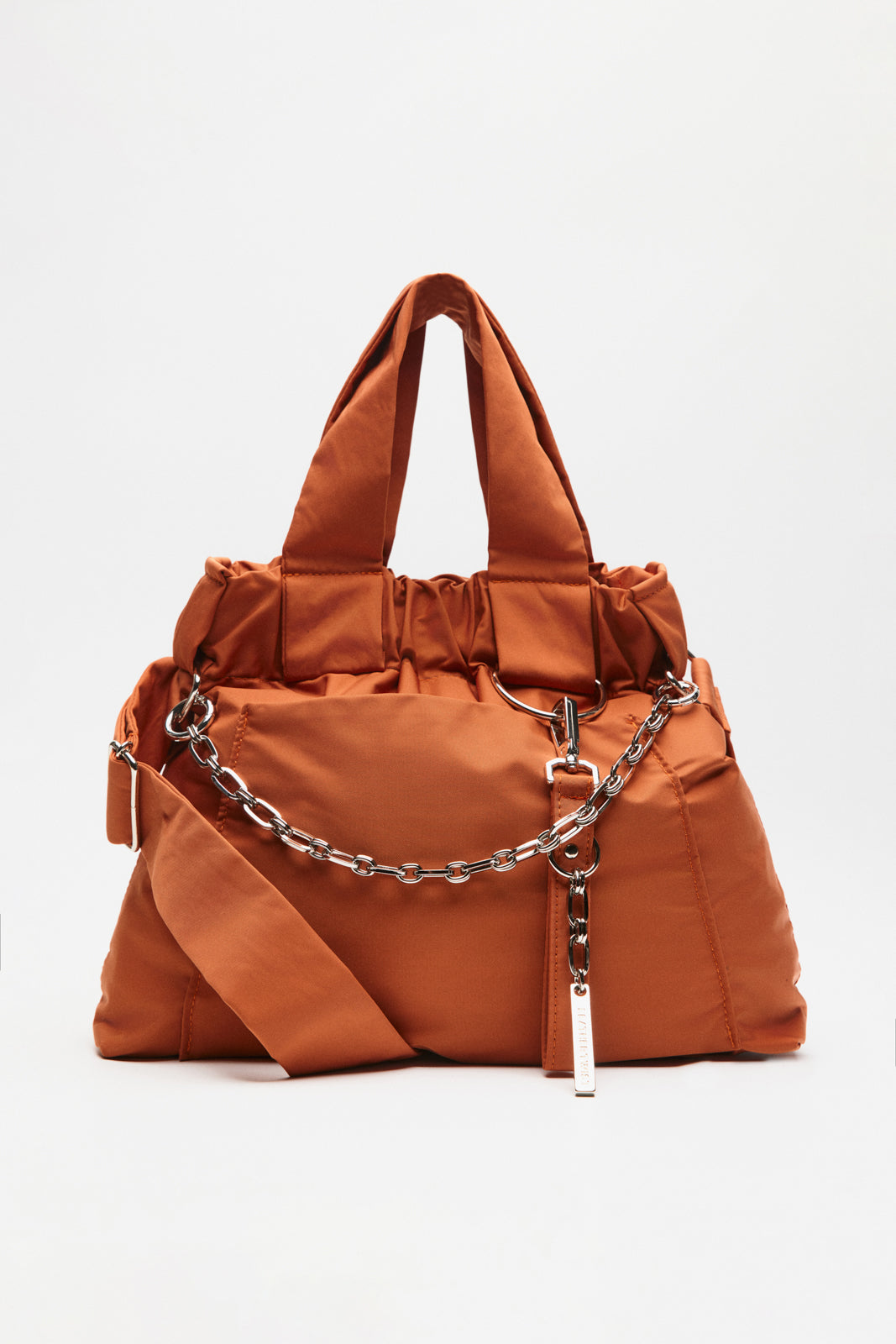 MIRSINI MINI ORANGE ANORAK ΤΣΑΝΤΑ γυναικεία. Ανοιγοκλείνει με λάστιχο. Το υλικό της τσάντας είναι 100% αδιάβροχο και καθαρίζει πολύ εύκολα.  Διαθέτει δύο λουριά. Ένα κοντό για να κρατιέται στο χέρι και ένα μακρύ με αυξομείωση για να κρατιέται είτε στον ώμο είτε χιαστί. Το εσωτερικό της είναι υπενδεδυμένο με φόδρα που έχει τυπωμένο το logo του brand και έχει και μία επιπλέον μικρή θήκη για το κινητό ή την κάρτα και τα κλειδιά. Διαθέτει μία εξωτερική τσέπη μεγάλης χωρητικότητας. Στο μπροστινό μέρος διακοσμείται με μία αλυσίδα νίκελ και ένα μπρελόκ το οποίο εκτός από διακοσμητική χρήση μπορεί να αφαιρεθεί και τοποθετηθεί στα κλειδιά. Μπορεί να ταιριάξει άψογα με όλα τα καθημερινά outfit ακόμα και με τις φόρμες σου.