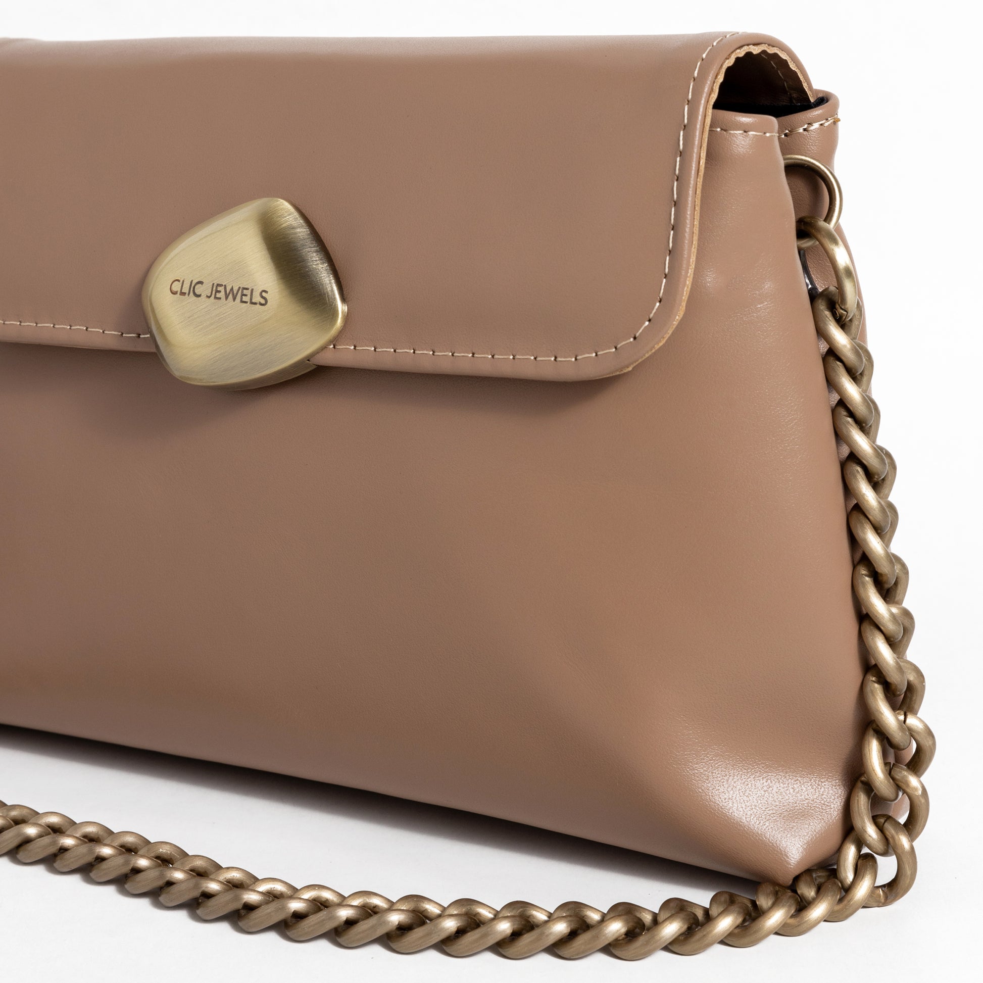 - Διαθέτει αποσπώμενη αλυσίδα λουρί σε bronze χρώμα 60cm για να φοριέται στον ώμο & ασορτί αποσπώμενο δερμάτινο λουρί για χιαστί 1.10cm