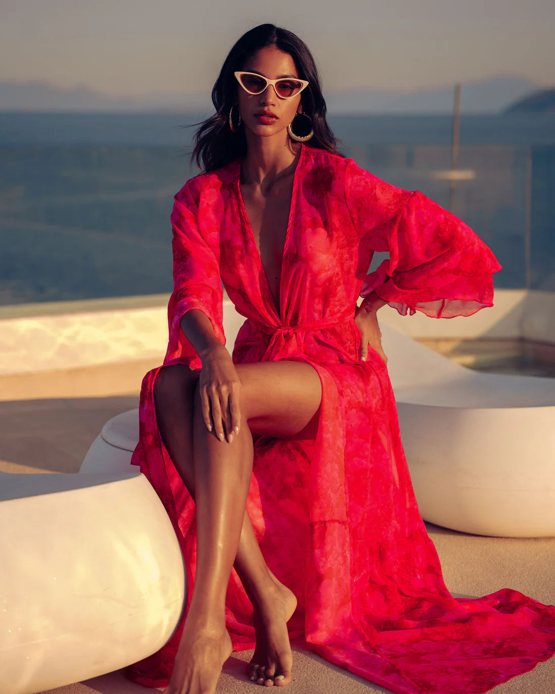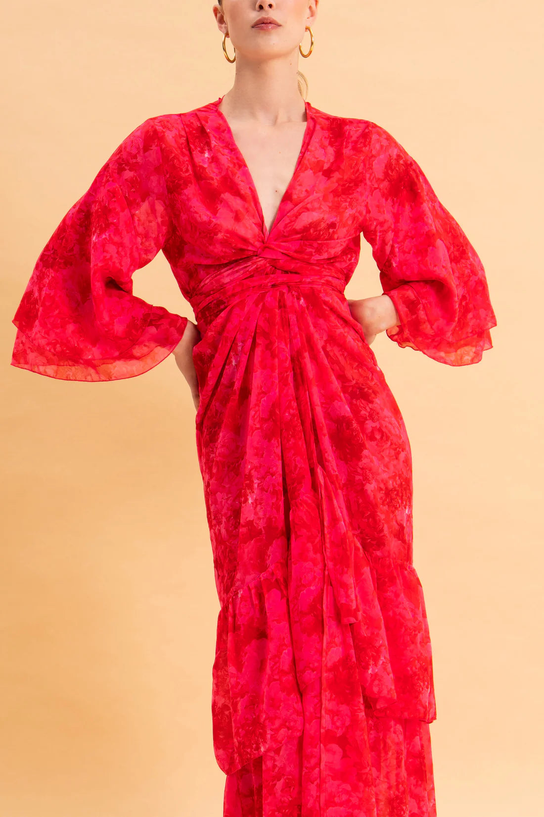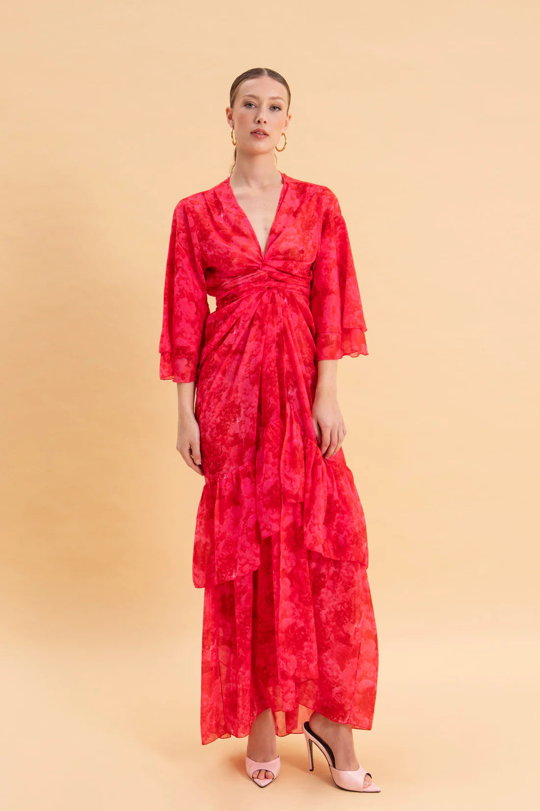 RUBY ROSE KIMONO DRESS WITH RUFFLES