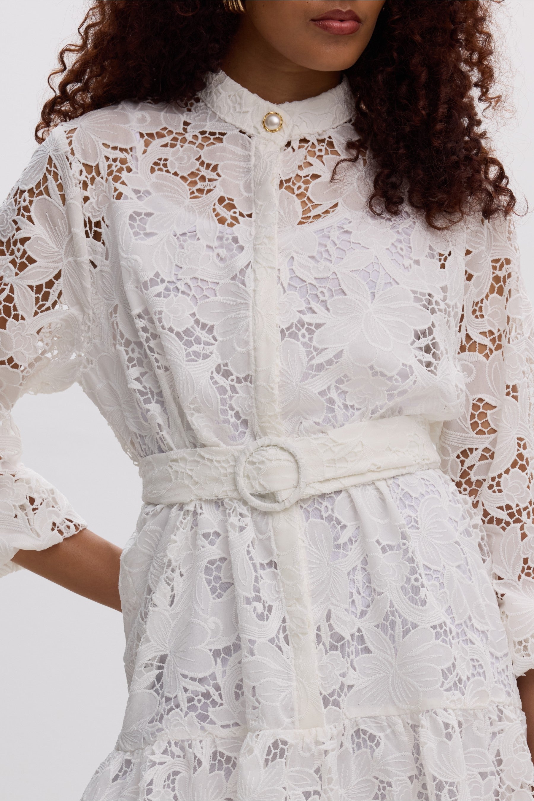 Το Sophia Dress, είναι η απόλυτη πρόταση για κομψές καλοκαιρινές εμφανίσεις με ρομαντικό αέρα. Κατασκευασμένο από εντυπωσιακή δαντέλα με floral μοτίβο, διαθέτει μακριά μανίκια , γιακά πουκαμίσου με υπέροχες λεπτομέρειες και αποσπώμενη ζώνη από το ίδιο ύφασμα που τονίζει την μέση. Η ελαφριά, ανάλαφρη υφή του και το θηλυκό μήκος το καθιστούν ιδανικό τόσο για πρωινές όσο και για απογευματινές εξόδους , resort looks και ιδιαίτερες περιστάσεις.