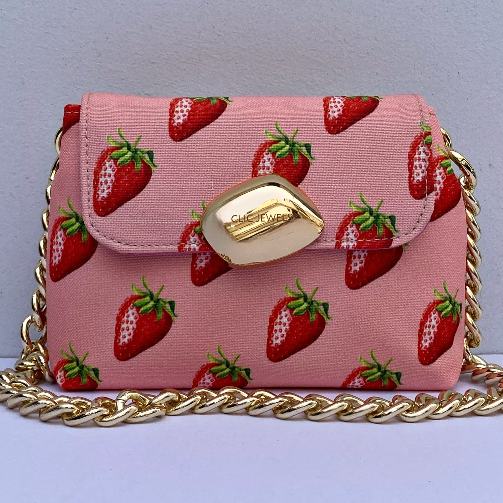 - Διαθέτει αποσπώμενη αλυσίδα λουρί σε χρυσό χρώμα 60cm για να φοριέται στον ώμο & ασορτί αποσπώμενο λουρί για χιαστί 1.10cm