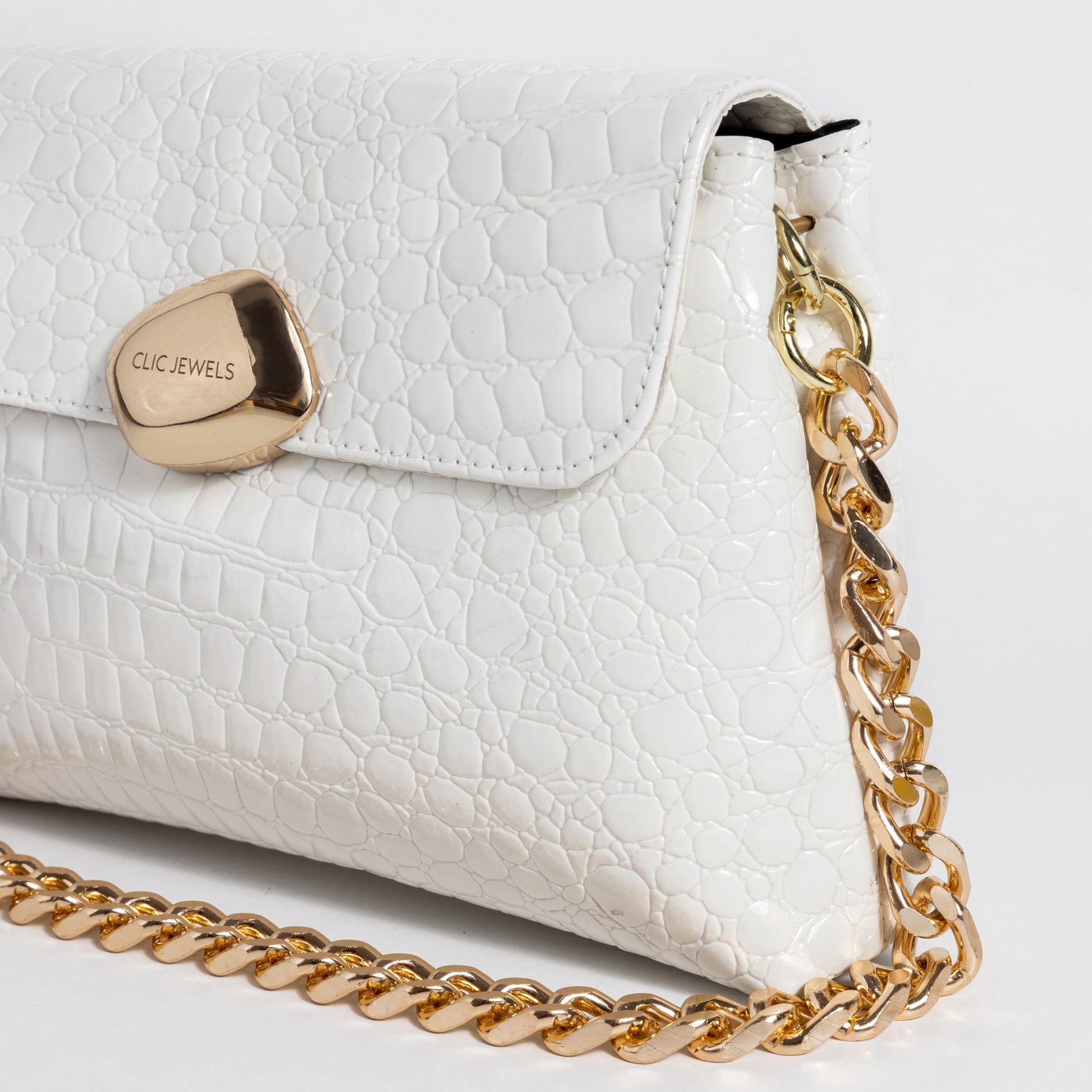 - Διαθέτει αποσπώμενη αλυσίδα λουρί σε χρυσό χρώμα 60cm για να φοριέται στον ώμο & ασορτί αποσπώμενo δερμάτινο λουρί περίπου 90cm για χιαστί