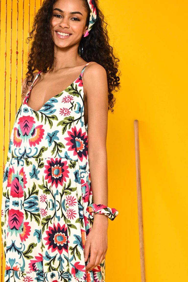 White Multi Floral Scrunchie Σούρα Μαλλιών Petit Boutik